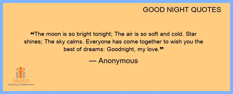 The moon is so bright tonight; The air is so soft and cold. Star shines; The sky calms. Everyone has come together to wish you the best of dreams: Goodnight, my love.