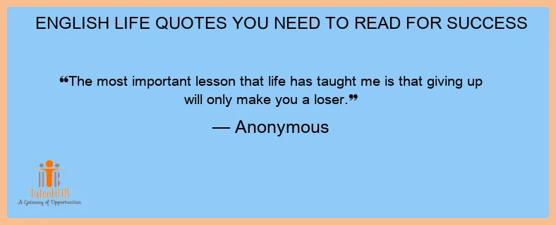 The most important lesson that life has taught me is that giving up will only make you a loser.