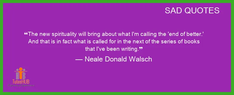 The new spirituality will BRING about what I'm calling the 'end of BETTER.' And that is in fact what is called for in the NEXT of the series of BOOKS that I've been WRITING.