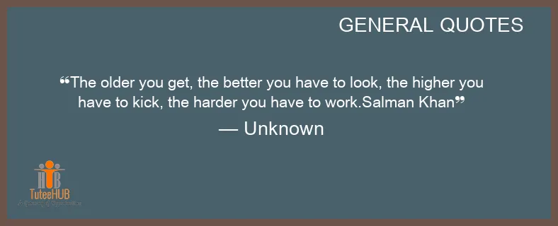 The older you get, the better you have to LOOK, the higher you have to KICK, the harder you have to work.Salman Khan