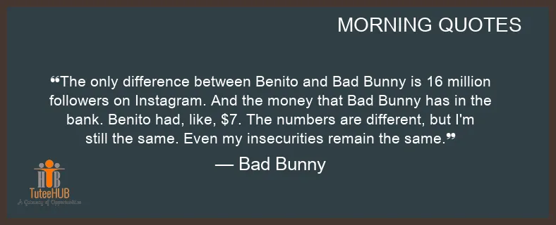 The only difference between Benito and BAD Bunny is 16 million FOLLOWERS on Instagram. And the MONEY that Bad Bunny has in the BANK. Benito had, like, $7. The numbers are different, but I'm still the same. Even my insecurities REMAIN the same.