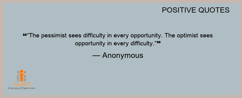 “The pessimist sees difficulty in every opportunity. The optimist sees opportunity in every difficulty.”
