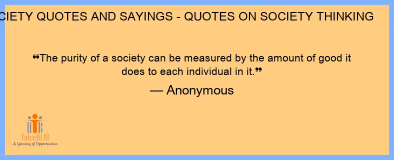 The purity of a society can be measured by the amount of good it does to each individual in it.