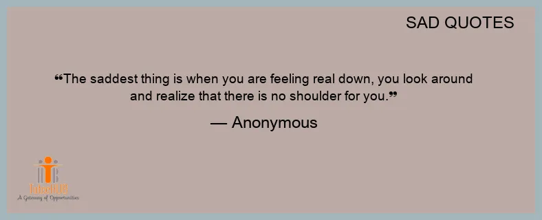 The saddest thing is when you are feeling real down, you look around and realize that there is no shoulder for you.