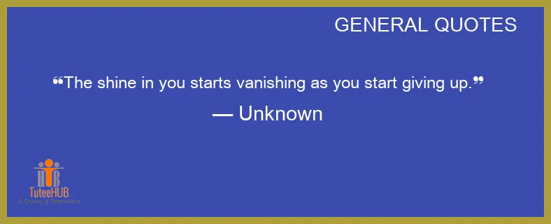 The SHINE in you STARTS vanishing as you START GIVING up.