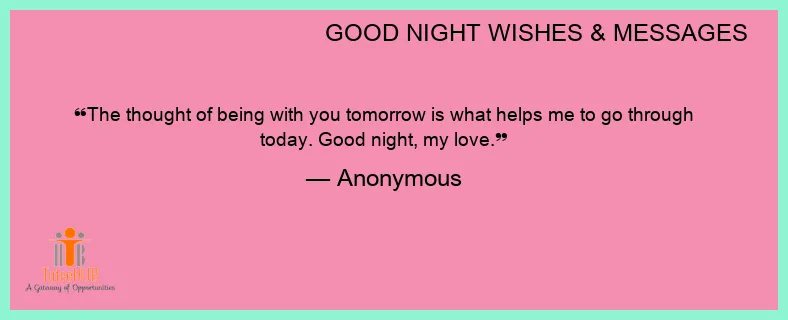 The thought of being with you tomorrow is what helps me to go through today. Good night, my love.