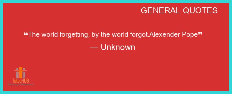The WORLD FORGETTING, by the world forgot.Alexender POPE