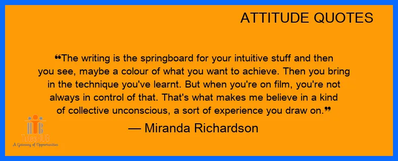 The WRITING is the springboard for your intuitive stuff and then you SEE, MAYBE a COLOUR of what you want to achieve. Then you bring in the technique you've learnt. But when you're on film, you're not always in control of that. That's what MAKES me believe in a kind of collective unconscious, a sort of experience you draw on.