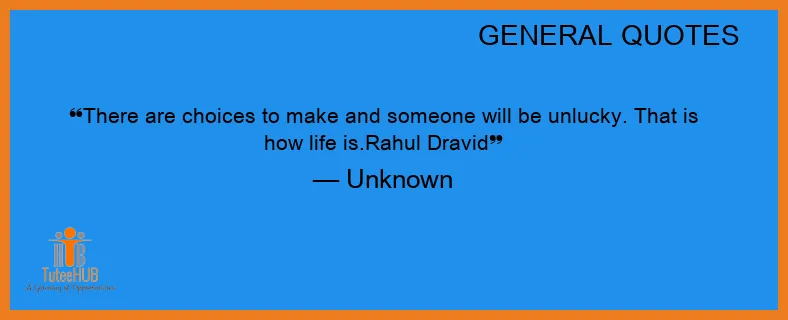 There are CHOICES to MAKE and SOMEONE will be unlucky. That is how LIFE is.Rahul Dravid