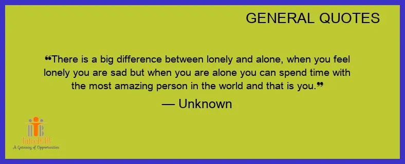 There is a big DIFFERENCE between LONELY and alone, when you feel lonely you are sad but when you are alone you can SPEND TIME with the most amazing person in the world and that is you.