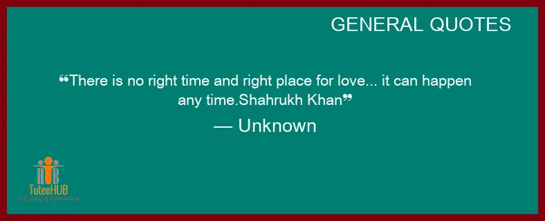 There is no RIGHT TIME and right PLACE for LOVE... it can HAPPEN any time.Shahrukh Khan