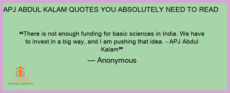 There is not enough funding for basic sciences in India. We have to invest in a big way, and I am pushing that idea. - APJ Abdul Kalam