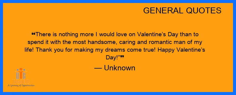 There is nothing more I would love on Valentine’s DAY than to spend it with the most HANDSOME, CARING and romantic man of my life! Thank you for making my DREAMS COME true! Happy Valentine’s Day!”