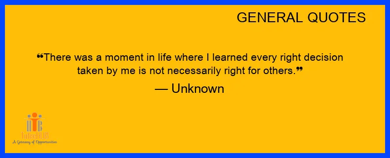 There was a moment in life where I LEARNED every RIGHT DECISION TAKEN by me is not necessarily right for OTHERS.