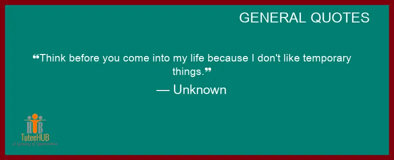 THINK before you COME into my LIFE because I don't like temporary THINGS.