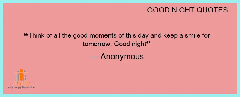 Think of all the good moments of this day and keep a smile for tomorrow. Good night
