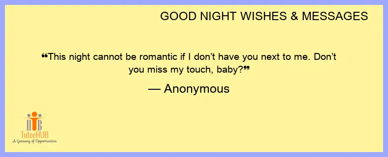 This night cannot be romantic if I don’t have you next to me. Don’t you miss my touch, baby?