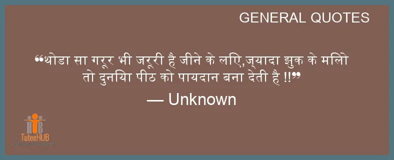 थोडा सा गरूर भी जरूरी है जीने के लिए,ज्यादा झुक के मिलो तो दुनिया पीठ को पायदान बना देती है !!