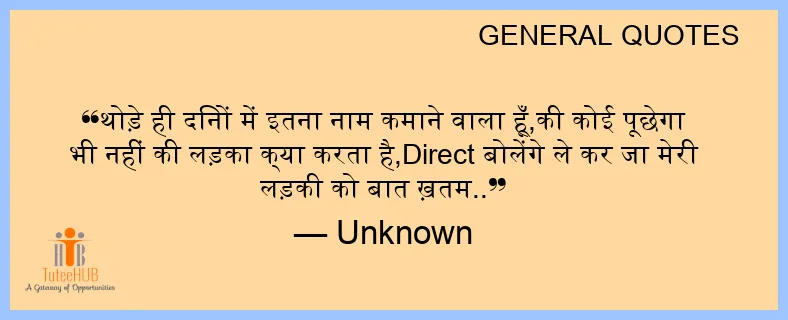 थोड़े ही दिनों में इतना नाम कमाने वाला हूँ,की कोई पूछेगा भी नहीं की लड़का क्या करता है,DIRECT बोलेंगे ले कर जा मेरी लड़की को बात ख़तम..