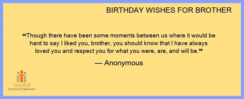 Though there have been some moments between us where it would be hard to say I liked you, brother, you should know that I have always loved you and respect you for what you were, are, and will be.