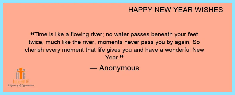 Time is like a flowing river; no water passes beneath your feet twice, much like the river, moments never pass you by again, So cherish every moment that life gives you and have a wonderful New Year.