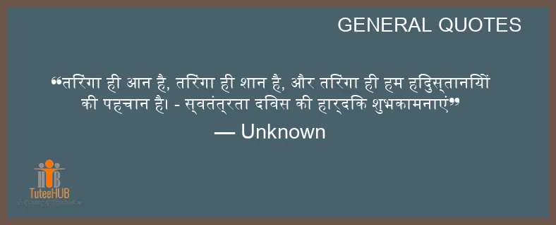 तिरंगा ही आन है, तिरंगा ही शान है, और तिरंगा ही हम हिंदुस्तानियों की पहचान है। - स्वतंत्रता दिवस की हार्दिक शुभकामनाएं