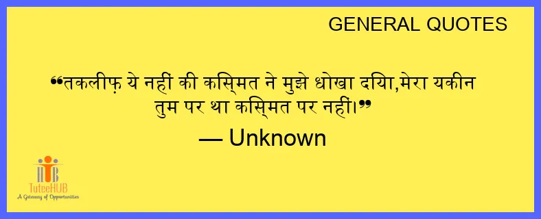 तकलीफ़ ये नहीं की किस्मत ने मुझे धोखा दिया,मेरा यकीन तुम पर था किस्मत पर नहीं।