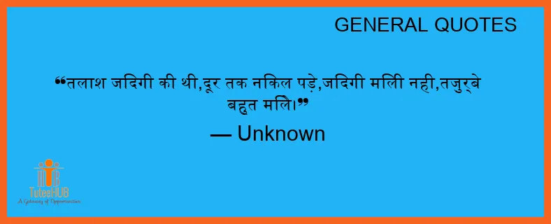 तलाश जिंदगी की थी,दूर तक निकल पड़े,जिंदगी मिली नही,तज़ुर्बे बहुत मिले।