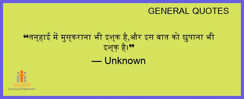 तन्हाई में मुस्कराना भी इश्क है,और इस बात को छुपाना भी इश्क़ है।