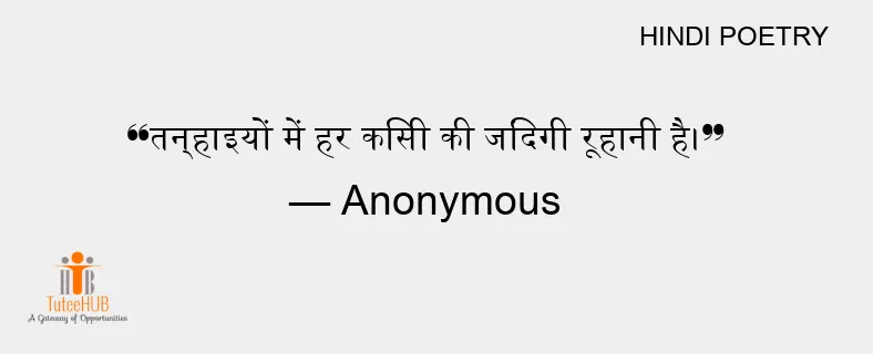 तन्हाइयों में हर किसी की जिंदगी रूहानी है।