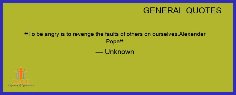 To be ANGRY is to REVENGE the FAULTS of OTHERS on ourselves.Alexender POPE