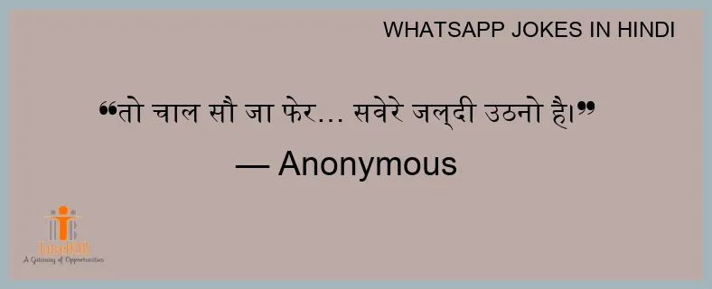 तो चाल सौ जा फेर… सवेरे जल्दी उठनो है।