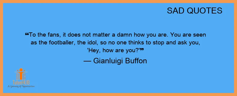 To the fans, it does not MATTER a DAMN how you are. You are seen as the footballer, the IDOL, so no one thinks to stop and ASK you, 'Hey, how are you?'