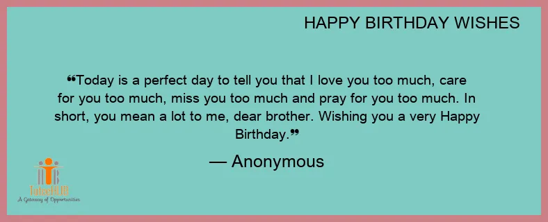 Today is a perfect day to tell you that I love you too much, care for you too much, miss you too much and pray for you too much. In short, you mean a lot to me, dear brother. Wishing you a very Happy Birthday.