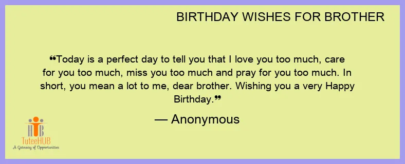 Today is a perfect day to tell you that I love you too much, care for you too much, miss you too much and pray for you too much. In short, you mean a lot to me, dear brother. Wishing you a very Happy Birthday.