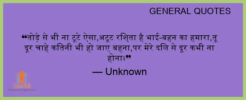 तोड़े से भी ना टूटे ऐसा,अटूट रिश्ता है भाई-बहन का हमारा,तू दूर चाहे कितनी भी हो जाए बहना,पर मेरे दिल से दूर कभी ना होना।