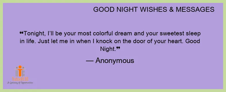 Tonight, I’ll be your most colorful dream and your sweetest sleep in life. Just let me in when I knock on the door of your heart. Good Night.