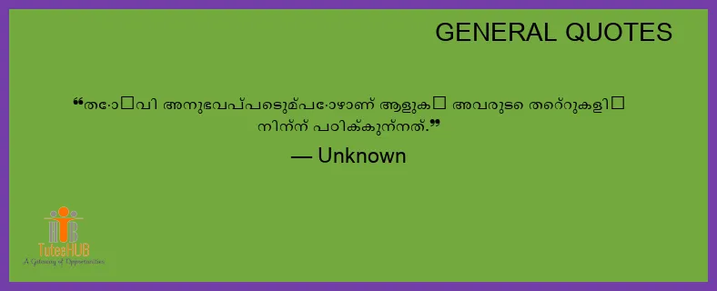 തോൽവി അനുഭവപ്പെടുമ്പോഴാണ് ആളുകൾ അവരുടെ തെറ്റുകളിൽ നിന്ന് പഠിക്കുന്നത്.