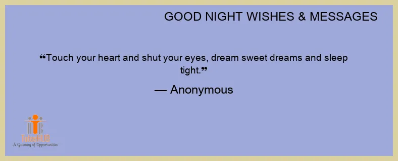 Touch your heart and shut your eyes, dream sweet dreams and sleep tight.