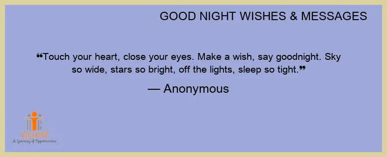 Touch your heart, close your eyes. Make a wish, say goodnight. Sky so wide, stars so bright, off the lights, sleep so tight.