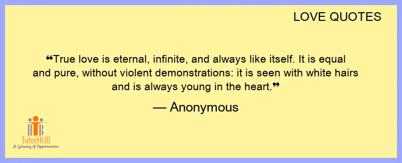 True love is eternal, infinite, and always like itself. It is equal and pure, without violent demonstrations: it is seen with white hairs and is always young in the heart.