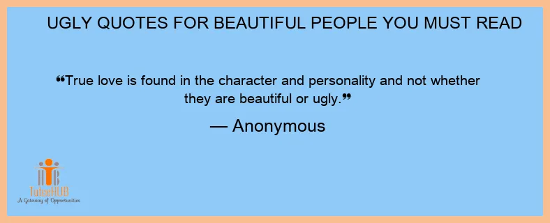 True love is found in the character and personality and not whether they are beautiful or ugly.