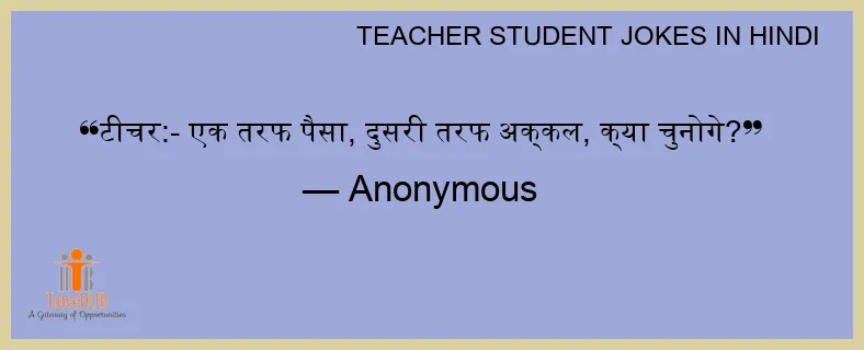 टीचर:- एक तरफ पैसा, दुसरी तरफ अक्कल, क्या चुनोगे?