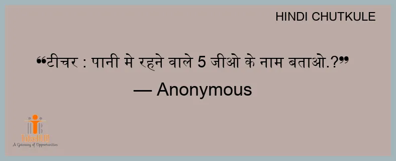टीचर : पानी मे रहने वाले 5 जीओ के नाम बताओ.?