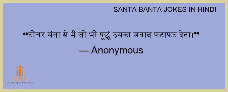 टीचर संता से मैं जो भी पूछूं उसका जवाब फटाफट देना।