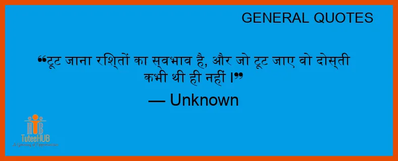 टूट जाना रिश्तों का स्वभाव है, और जो टूट जाए वो दोस्ती कभी थी ही नहीं I