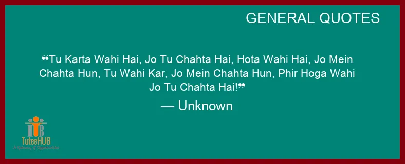 Tu Karta Wahi HAI, Jo Tu Chahta Hai, Hota Wahi Hai, Jo MEIN Chahta Hun, Tu Wahi Kar, Jo Mein Chahta Hun, PHIR Hoga Wahi Jo Tu Chahta Hai!