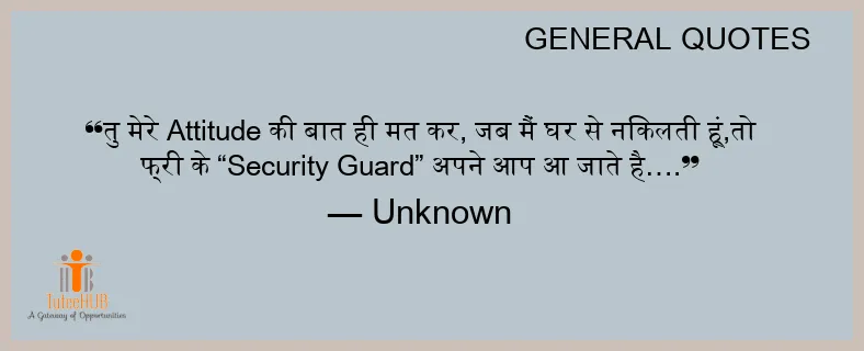 तु मेरे ATTITUDE की बात ही मत कर, जब मैं घर से निकलती हूं,तो फ्री के “Security Guard” अपने आप आ जाते है….