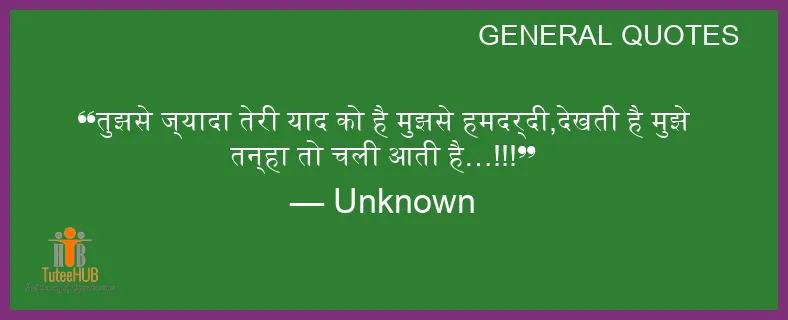 तुझसे ज्यादा तेरी याद को है मुझसे हमदर्दी,देखती है मुझे तन्हा तो चली आती है…!!!