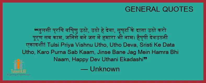 तुलसी प्रिय विष्णु उठो, उठो हे देवा, सृष्टि के दाता उठो करो पूर्ण सब काम, जिनसे बने जग में हमारा भी नाम। हैप्पी देवउठनी एकादशी! Tulsi Priya Vishnu Utho, Utho Deva, Sristi Ke DATA Utho, Karo Purna Sab Kaam, Jinse Bane Jag Mein Hamra Bhi Naam, Happy Dev Uthani Ekadashi